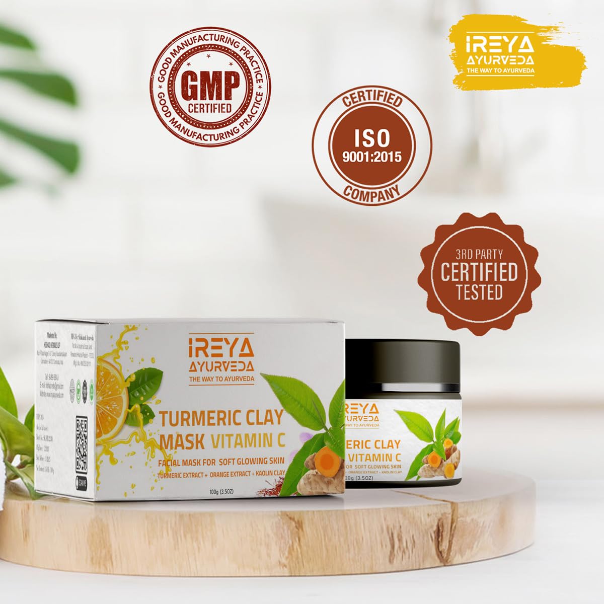 This turmeric vitamin C clay mask is a natural and effective way to cleanse and rejuvenate your skin. It is made with a blend of turmeric extract vitamin C orange and saffron extracts fuller's earth kaolin clay making it a powerful tool for achieving clear glowing skin. vitamin C helps to brighten and even out skin tone. The orange and saffron extracts also contain powerful antioxidants that help to protect skin from damage caused by free radicals. Fuller's earth is a natural clay that has a gentle yet effective exfoliating effect which helps to remove dead skin cells and unclog pores. Kaolin clay is a milder clay that helps to absorb excess oil and impurities while also providing a soothing and cooling effect on the skin. This turmeric vitamin C clay mask is easy to use and gentle on the skin. Simply apply a thin layer to clean dry skin and leave it on for 10-15 minutes before rinsing off with warm water. It is suitable for all skin types and can be used daily for optimal results.