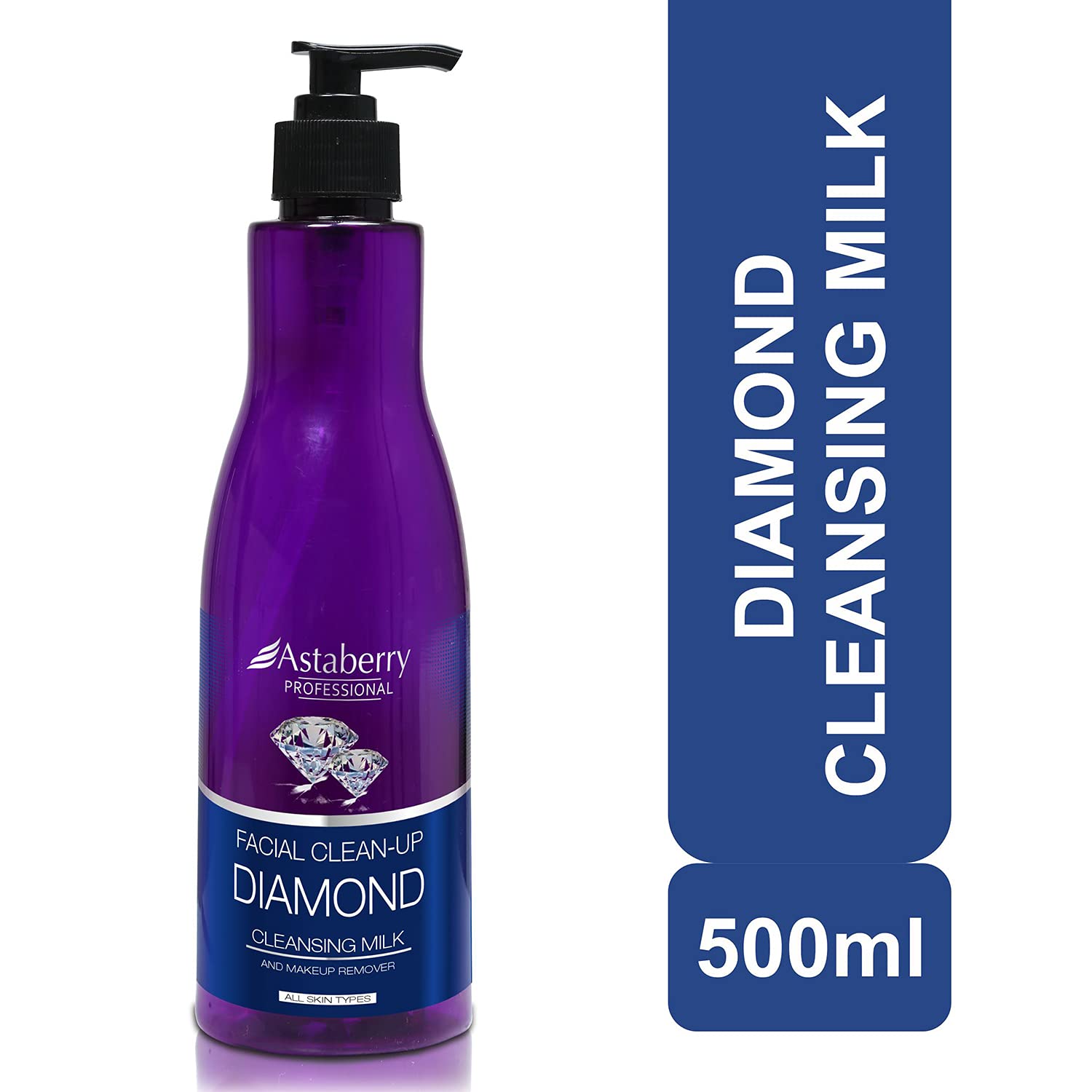 ASTABERRY Professional Facial Cleanup Diamond Cleansing Milk 500ml- Makeup Remover & Deep Cleanse | Fights with pollutants | Smooth and hydrated skin | Goodness of Vitamin E