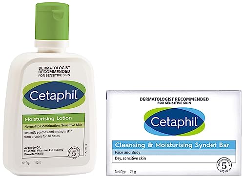 Cetaphil Moisturizing Lotion, 100ml and Cetaphil Cleansing And Moisturising Syndet Bar, 75g