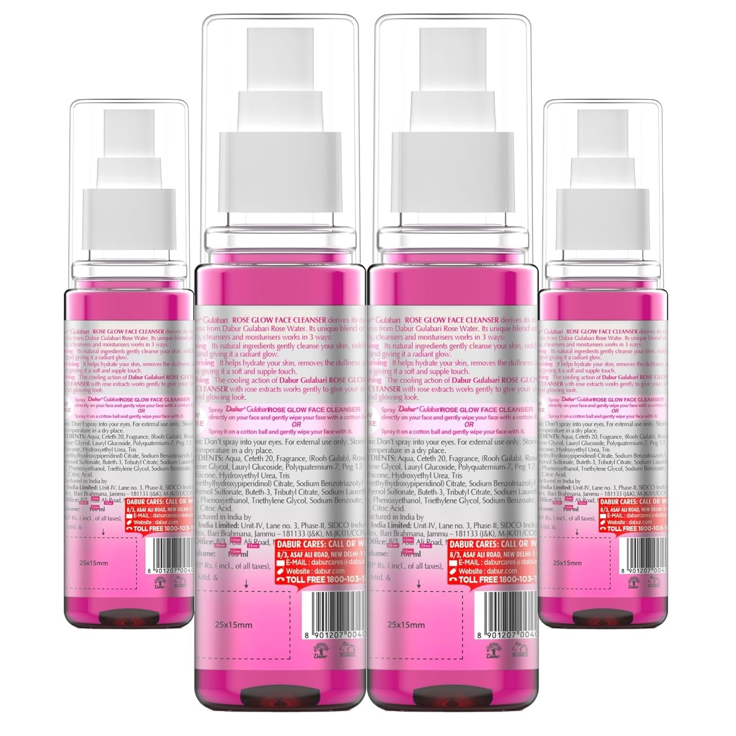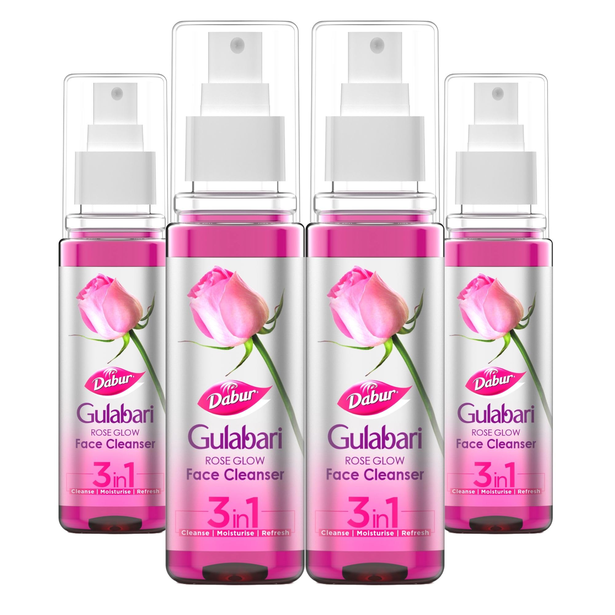 Dabur Gulabari Rose Glow Face Cleanser - 400ml (100ml*4) | Gentle Cleanser for All Skin Types | Cleaner Balanced & Hydrated Skin