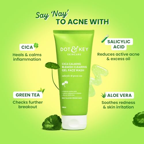 HomeHealth & PersonalSkin CareFace CareFacewash & CleanserDot & Key CICA Face Wash for Acne Prone Skin, 2% Salicylic Acid with Green Tea | For Oily & Sensitive Skin | Sulphate Free for Men & Women | Oil Control Face Wash with Zinc | 100ml