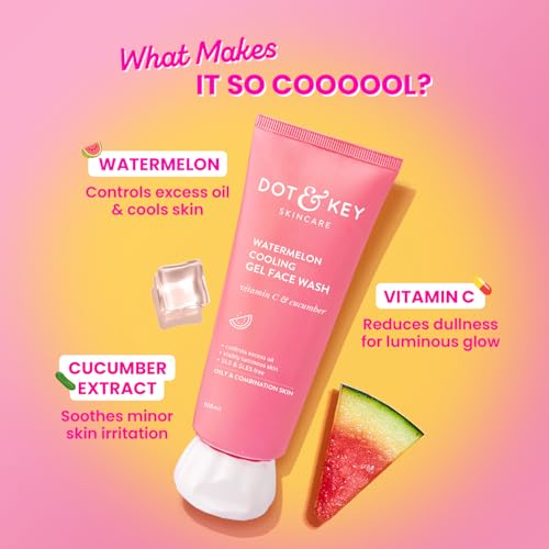 HomeHealth & PersonalSkin CareFace CareFacewash & CleanserDot & Key Watermelon Cooling Gel Face Wash With Vitamin C & Cucumber | Face Wash For Glowing Skin|Oil Free |Removes Excess Oil & Dirt | For Combination & Oily Skin| For Women & Men|100Ml