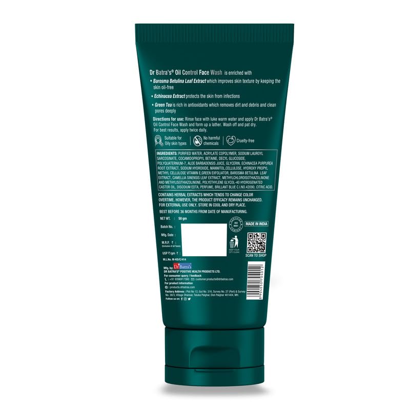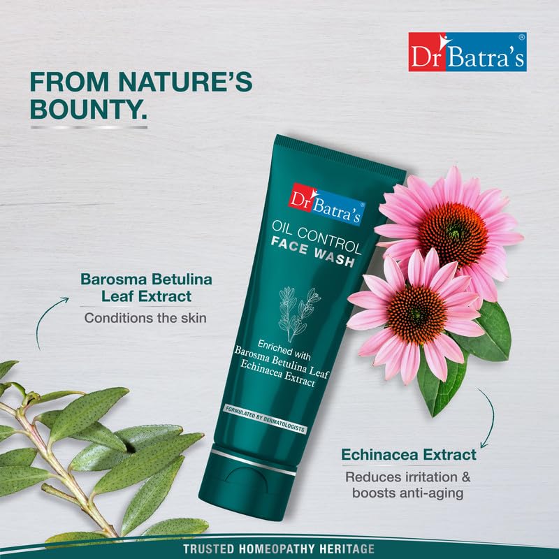 Dr Batra's range of skin care products are carefully formulated with natural ingredients to cleanse and protect your skin. Dr Batra's Oil Control Face Wash is specially formulated to keep your skin looking healthy and oil-free. The cleansing and ifying properties of Echinacea Green Tea and Barosma Betulina leaf extracts work together to cleanse clogged pores remove excess oil and balance the moisture in your skin. Without having to worry about your skin drying out this effective yet gentle face wash for oily skin is a must-have for clean and clear skin.