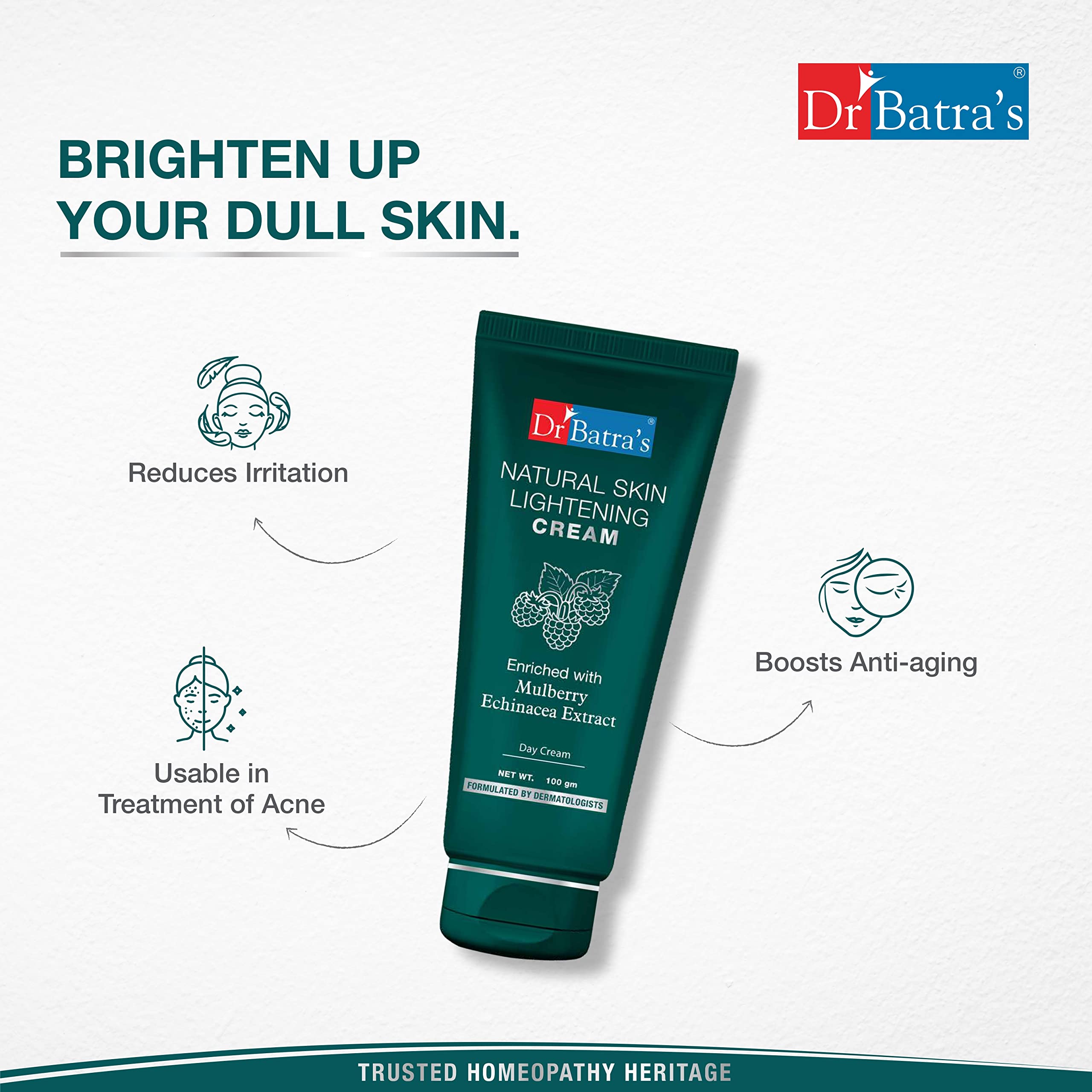 Dr Batra's range of skin care products are carefully formulated with natural ingredients to nourish revitalize and protect your skin. Dr Batra's Natural Skin Lightening Cream is infused with the goodness of Mulberry Echinacea and Olive extracts. These time-tested natural ingredients work together to enhance overall skin health giving you a visibly clearer complexion. Free from harsh chemicthis skin lightening cream is the perfect choice for brighter and naturally radiant-looking skin.