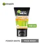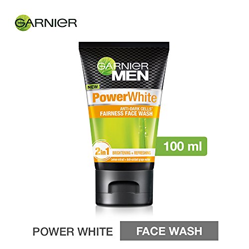 Garnier Men Power White Anti-Pollution Double Action Facewash 100gmGarnier Men Face Wash Power White Double Action (100g)Garnier Men Power White Anti-Dark Cells Fairness Face Wash 100gIntensive sun makes skin produce dark dead cells. On top exposure to pollution and dirt makes skin darker.Garnier Men Power white - The 1st face wash for men that removes impurities pollutants and dark cells for an intensive fairness action.Immediate deep cleansing - Its formula enriched with anti-oxidant grape water eliminates impurities pollutants.Intensive dead cell removal - Enriched with brightening lemon extracts and gentle micro-polishing beads pit removes dark dead cells and visibly brightens skin.