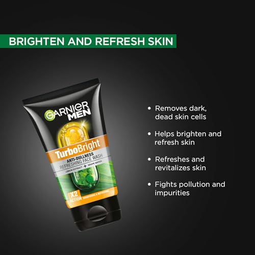 Product Description Garnier Men Fairness FaceWash visbily brightens skin by removing impurities pollutants & dark dead cells . Simply massage on wet face & rinse with water. Use twice daily. Garnier Men is India's No. 1 Men's FaceWash Brand* From the Manufacturer Brightening Face WashGarnier presents a face wash for men that not only cleanses but also brightens it to give you a fairer looking skin. The Garnier Men Power Light face wash is an effective cleanser that reveals a fresher brighter looking skin with each use. Formulated for intensive fairness this cleansing face wash is a must-have in your essentials kit no matter where you go. This Garnier face wash for men removes dark cells and pollutants while deeply cleansing the skin of impurities. You'll see a visibly brightened skin each time you have washed your face with the Garnier PowerLight face wash for men.Effective Ingredients for Deep CleansingThe Garnier Men PowerLight face wash has anti-dark cells and anti-impurities ingredients which eliminate dark dead cells and penetrate deep into the skin to clear impurities and pollutants. It also contains micro-polishing beads that effectively exfoliate the skin. The lemon extracts in the Garnier men PowerLight face wash help control excess oil secretion while the antioxidant grape water removes toxins and repairs skin. Experience freshness and brightening effect that comes with the deep cleansing this Garnier mens face wash offers. Apply on wet face gently massage with fingertips in circular movements and wash off. Use this face wash daily to find a new you every time you cleanse your skin.Brand: GarnierPack Size: 100 gGender: MenRemoves impurities and pollutantsEliminates dark dead cellsGives a brighter appearance by deep cleansing your skinContains: Micro- polishing beads for exfoliation lemon extracts for oil control and anti-oxidant grape water