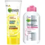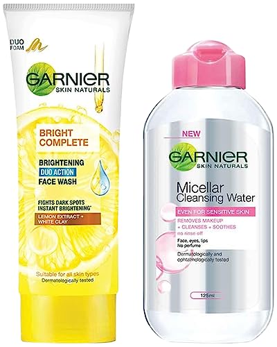 Garnier Skin Naturals Micellar Cleansing Water 125mlGarnier Micellar Cleansing Water is a make-up remover and cleanser that removes make-up and other impurities from your skin easily. It is enriched with cleansing molecules called Micelles that attract impurities lifting them away from your pores â just like a magnet. No rubbing is needed. How to use â Pour some micellar water onto a cotton pad press lightly on the skin for a few seconds swipe away gently. Proof is on the cotton. Garnier Micellar Cleansing Water is perfect for everyday make-up. If heavy and waterproof make-up is more your style try the Garnier Micellar Oil Infused Cleansing Water.Garnier Skin Naturals Light Complete Duo Action Facewash 100gGarnier Light Complete Duo Action is a womens facewash which gives you fairer looking skin in 1 wash. It is enriched with White Clay which gives instant whitening and Lemon Extracts which helps reduce dark spots. It also has Vitamin B3 and Vitamin CG known to help reduce the appearance of new dark spots. It is suitable for all skin types. How to use - Apply on wet face. Gently massage with fingertips. Avoid the eye contour area. Rinse thoroughly. For best skin care results follow it up with Garnier Light Complete Serum Cream during the day and Garnier Light Complete Night Cream at night.