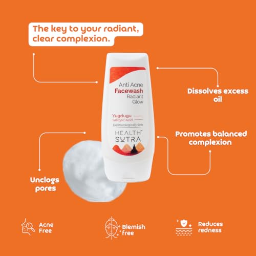 Health Sutra Anti-Acne Face Wash Face Wash for Acne-Prone Skin with 0.6% Yugdugu & 1.2% Salicylic Acid Anti-Acne Treatment for Blemish-Free Skin Non-Comedogenic Formula - 100ml