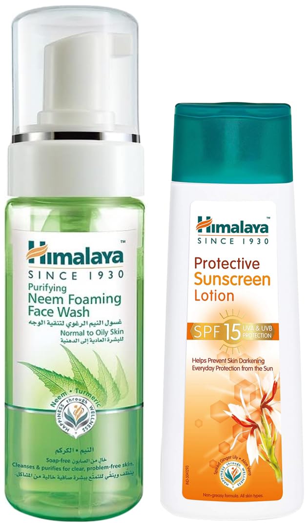 Himalaya Herbals Purifying Neem Foaming Face Wash 150mlNeem face wash to prevent pimples and purify the skin. Details This face wash is a soap free herbal formulation that gently removes impurities and prevents pimples. Neem well known for its antibacterial properties kills problem-causing bacteria and turmeric effectively controls acne and pimples. Use regularly for clear soft and pimple-free skin. How to Use Moisten face and neck. Apply a small amount of Himalaya Purifying Neem Face Wash and gently work up a lather using a circular motion. Wash off and pat dry. Use twice daily. Follow with herbal Himalaya Face Moisturizing Lotion for best results. Qty 150mlHimalaya Herbals Protective Sunscreen Lotion 100mlHimalaya Protective Sunscreen Lotion SPF 15 Cinnabloc: A major skincare overall again because most of my products are finishing. I am trying to gather as many about as deep cleansing lotion to remove the sun block and make up. Even high protection mineral cream SPF 50 Himalaya herbals deep cleansing milk. It's just an sunscreen lotion for oily skin and it has which is nice I have almost always put on some oil free facial sunscreen every time I go I do check safety drink natures life herbal blend aloe Vera Aloe Vera is a house plant. It cleanses the dirt particles formed by the dust in the face it helps in preventing pimples on the faces it fights with bacteria & also it is a good moisturizer. Himalaya protective sunscreen lotion SPF 15 cinnabloc provides protection between the skin & the elements therefore Himalaya protective sunscreen lotion SPF 15 cinnabloc: uses 100%natural ingredients in the preparation of their products. Himalaya protective sunscreen lotion SPF 15 cinnabloc also brightens our face & also it is the largest selling product all over India it is also cheaper in price. Himalaya protective sunscreen lotion SPF 15 cinnabloc is very popular in India.