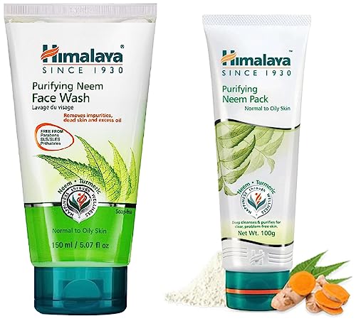 Himalaya Purifying Neem Pack 100gPurifying Neem Pack: Clean clear and healthy complexion. What it does: Himalaya's Purifying Neem Pack brings together the goodness of Neem Fuller's Earth and Turmeric which work together to regulate excess oil secretion clean clogged pores and prevent the recurrence of pimples. Key ingredients: Neem Oil and Neem leaves are excellent skin care ingredients. The oil relieves dry skin and soothes itchiness redness and irritation. It also improves general skin health and immunity combating bacterial infections such as acne boils and ulcers. Turmeric has been used as an antiseptic for centuries. The herb also has strong anti-inflammatory properties which soothe your skin gently. It also makes your skin soft and supple. Fuller's Earth is primarily used to lighten the skin. It has cooling and anti-inflammatory properties that remove deep-seated dirt and skin pollutants.Himalaya Herbals Purifying Neem Face Wash 150mlHimalaya Herbals Neem Face Wash 150ml removes impurities from the skin and helps in clearing pimples. It is a soap-free and herbal formulation along with being a natural mix of Neem and Turmeric. This product effectively restores your skin's natural health and vitality. The face wash comes in an easy to use tube which can be conveniently carried in your bag too. Himalaya Herbals Purifying Neem Face Wash primarily works towards helping one get rid of irritating pimples and acne. With its soap-free base and herbal formulation it cleans the pores of the facial skin and helps remove pimples eventually. This neem face wash contains a blend of turmeric and neem which are considered to be good antifungal and antibacterial elements. Regular use of this face wash keeps the acne from growing back again. It contains neem oil which provides great care to the skin by relieving dry skin and comforting the skin from any redness or irritation. In case of any cuts or wounds use of this face wash prevents any burning sensations on that area while cleaning. Neem deals with the bacteria and prevents any blemishes or marks to reappear. Turmeric being the second most important ingredient of this face wash is considered to be a great antiseptic and a powerful healer. Gradual use of this face wash makes the skin look even without any partial pigmentation. Himalaya Herbals Purifying Neem Face Wash coming in a tube of 150 ml helps moisten the face purify the pores by deep cleansing and works perfect for all skin types. This product is safe for daily use and could be used multiple times in a day to get best results. Product Features It can be used both by men and women. Comes in a 150 ml tube. Contains turmeric and neem oil. Has a soap-free base. Kills bacteria. Helps prevent regrowth of acne.