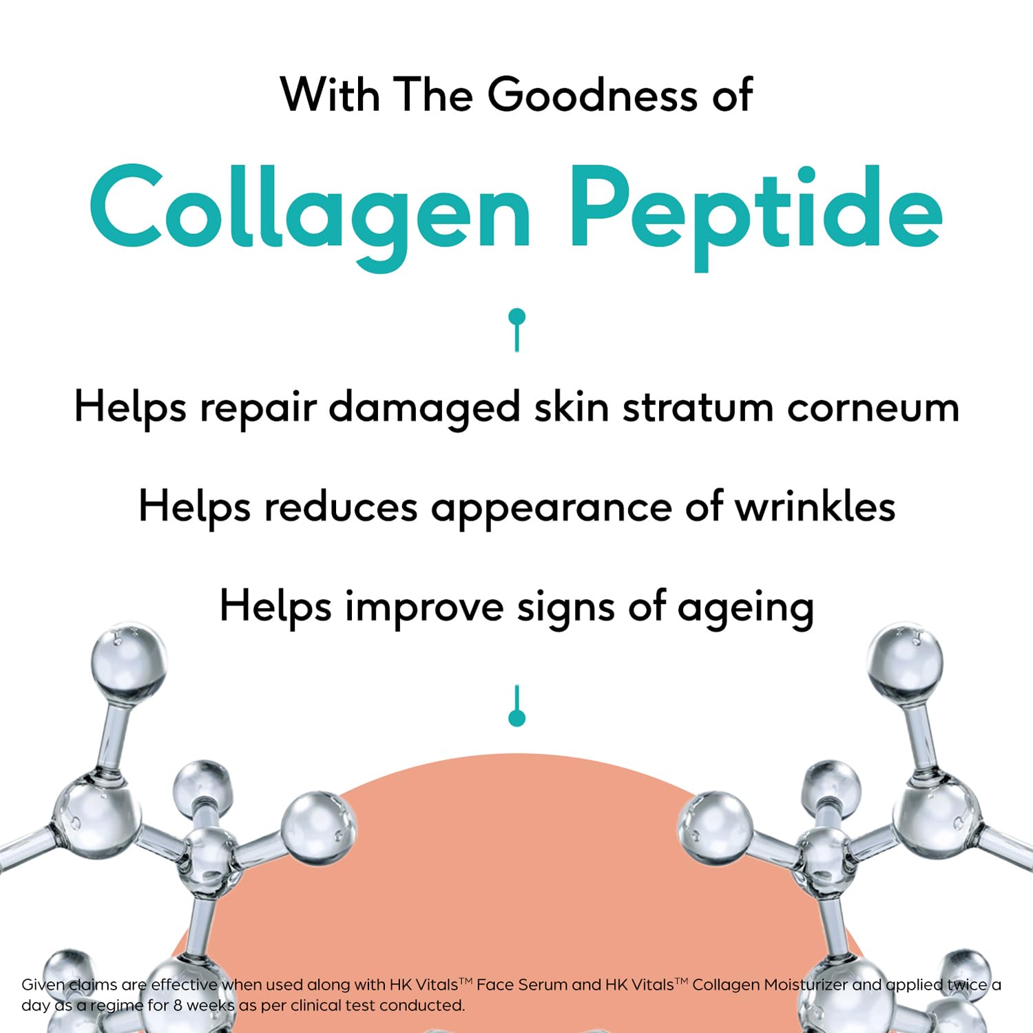 HOW TO USE: Apply face cleanser onto your skin & massage gently. Rinse & pat dry. For best results use twice a day along with HK VITALS Collagen Face Cream & HK VITALS Collagen Face Serum