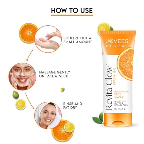 Jovees RevitaGlow¢ Vitamin C Rejuvenating Face Wash is a light-creamy all-natural formula made with Kakadu Plum Olive Oil Coconut Oil Orange Peel extract and other natural ingredients that deep cleanse the skin provide rich hydration and a natural luminance to the complexion making your skin shine and feel fresh. It also helps in fading dark spots and lightening hyperpigmentation revealing fresh vibrant and glowing skin The perfect way to start your morning and night cleansing routines.