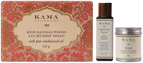 Kama Ayurveda Turmeric and Myrrh Skin Brightening Soap, 125g & Kama Ayurveda Nalpamaradi Thailam Skin Brightening Treatment- 50 ml & Kama Ayurveda Mridul Soap-Free Face Cleanser, 40g