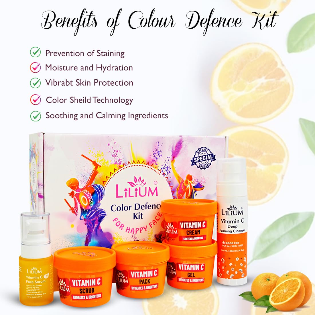 Lilium Color Defence Kit 530gm | Illuminate Your Skin With Power of Vitamin C For Luminous & Youthful Glow | Radiant Complexion & Anti Pollution | Deep Cleansing Soothing & Hydrating