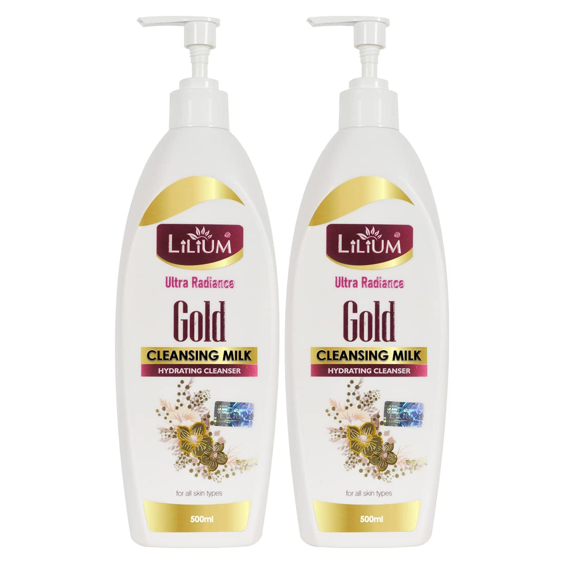 Lilium Gold Cleansing Milk 500 ml Pack of 2 Ultra Radiant Glowing Skin Moisturizing Hydrating Soothing Skin Brightening Antioxidant Properties All Skin Type For Women & Men