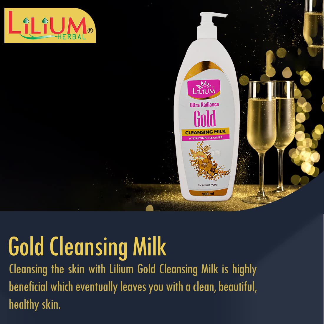 Lilium Herbal Gold Cleansing Milk (900 ml) Ultra Radiant Glowing Skin Moisturizing Hydrating Soothing Skin Brightening Antioxidant Properties All Skin Type For Women & Men
