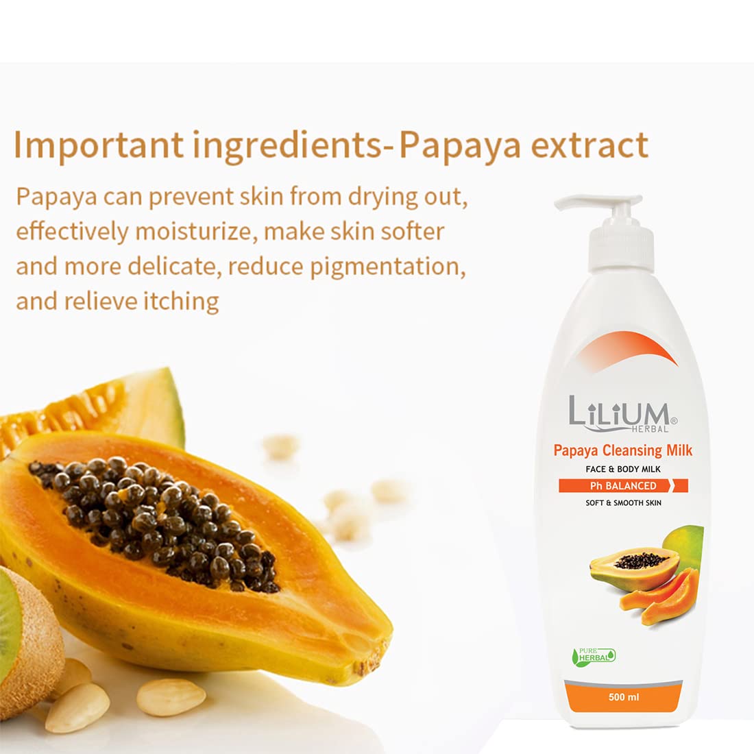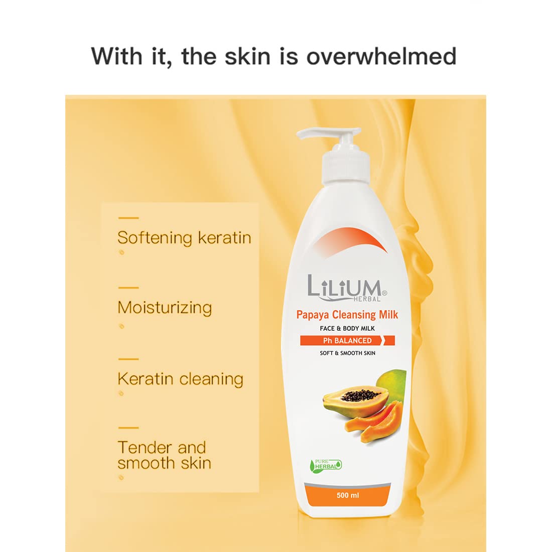 Lilium Papaya Cleansing Milk is a rejuvenating skincare product that combines the natural goodness of papaya with the nourishing properties of cleansing milk This innovative formula is designed to gently and effectively cleanse your skin leaving it feeling refreshed revitalized and deeply moisturized Papaya is renowned for its ability to exfoliate dead skin cells unclog pores and promote a brighter more even skin tone. The enzymes in papaya work to break down impurities excess oil and makeup residue making it an ideal choice for a thorough yet gentle cleanse
