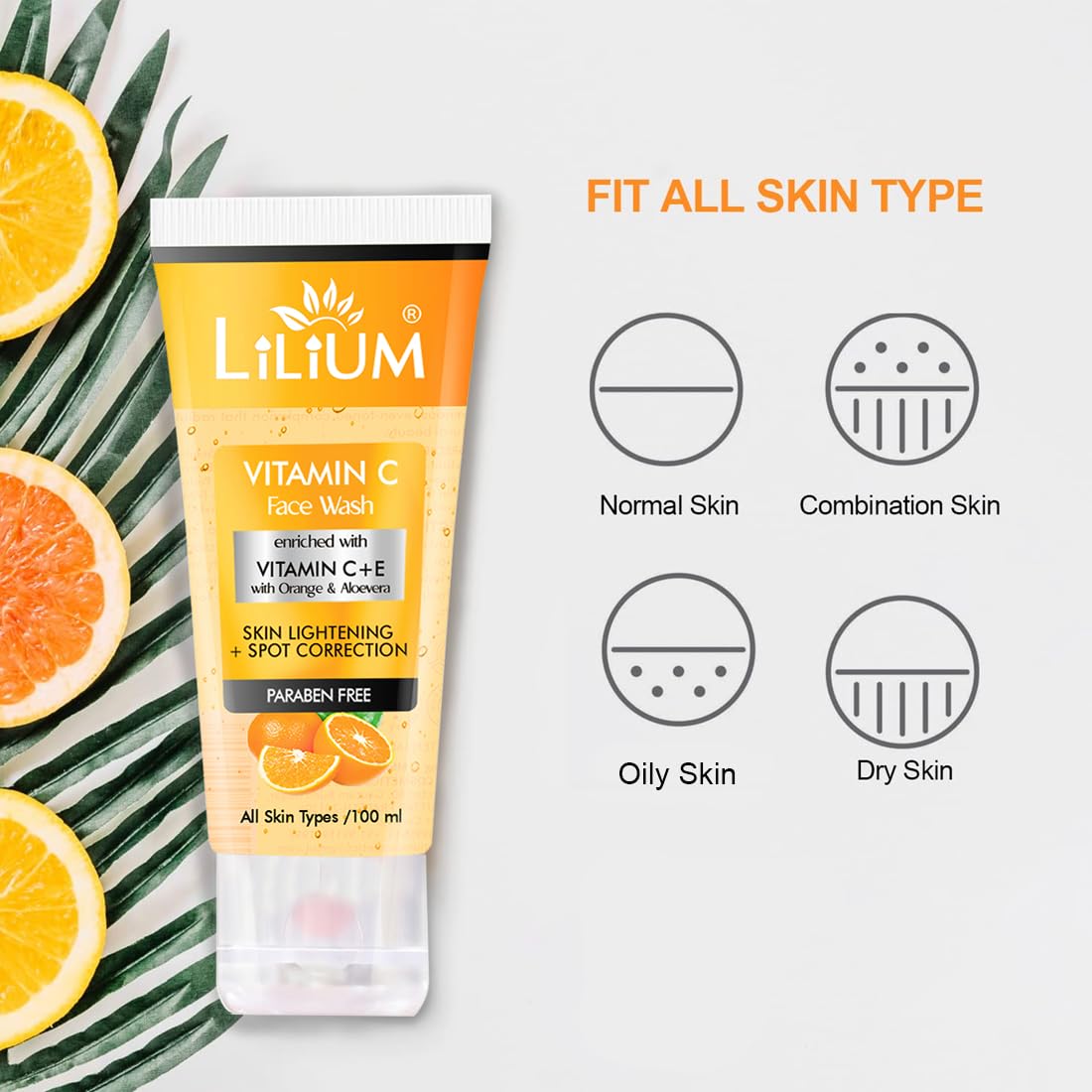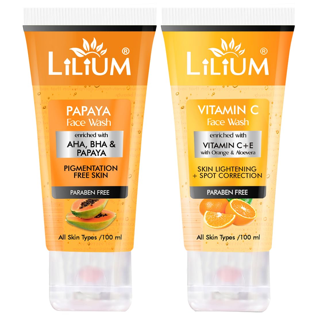 Illuminate your skin with Lilium Vitamin C & Papaya Face Wash. This powerful blend combines the brightening benefits of vitamin C with the exfoliating properties of papaya. Vitamin C helps to reduce dark spots even out skin tone and boost radiance while papaya gently removes dead skin cells unclogs pores and promotes a smooth glowing complexion. Suitable for all skin types this face wash leaves your skin feeling refreshed revitalized and luminous.