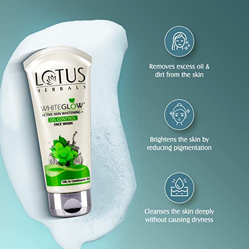 Lotus Herbals Whiteglow Active Skin Whitening & Oil Control Face Wash | With Green Tea Extract | Brightens Skin | For All Skin Types | 100g