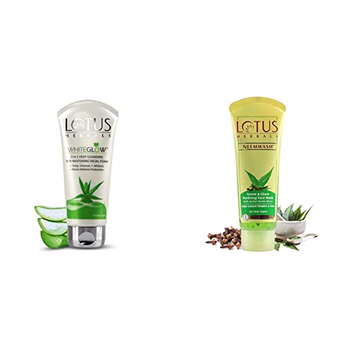 Lotus Herbals Whiteglow 3-In-1 Deep Cleansing Skin Whitening Facial Foam 100g And Lotus Herbals Neemwash Neem And Clove Purifying Face Wash 120g