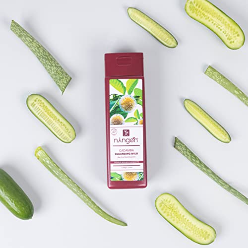 Ningen Cleansing Milk with Cadamba Neem Aloe and Cucumber helps cleanse skin without stripg away natural oils. Use this natural emulsion to remove daily dirt grime and make-up.