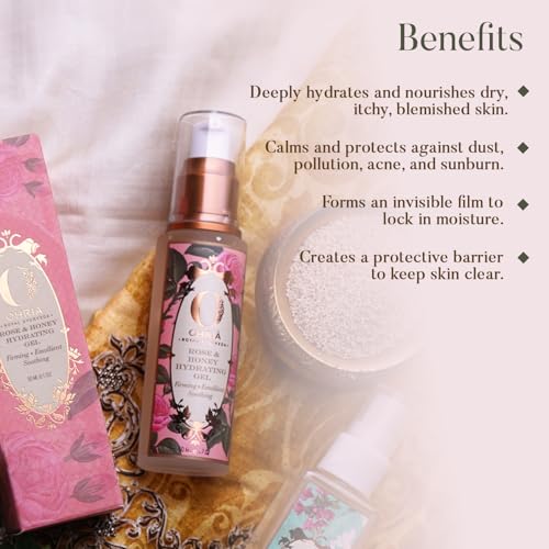 Deeply hydrates revitalizes soothes dry & itchy blemished skin. Rose & Marigold Floral waters nourishes & strengthens elasticity while Honey softens. Forms a protective nourishing layer as it is pure soft light transparent & breathable product. Gentle & hydrating for under eye area. Protects against white heads and blackheads.