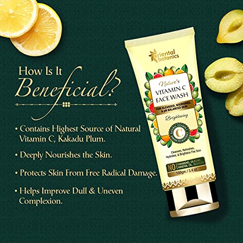 Nature's Vitamin C Brightening Face Wash - With Kakadu Plum - For Cleansed Nourished and Ph Balanced Skin - No Parabens Silicone Mineral Oils
