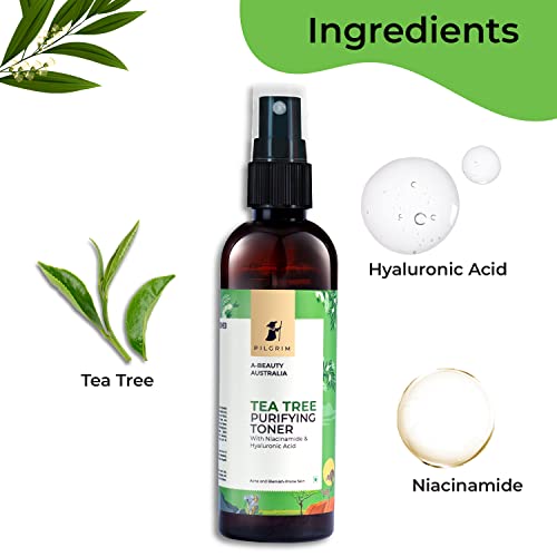 Pilgrim Tea Tree Acne Clarifying Kit | Tea Tree Gel face wash with 1% Salicylic & CICA Face wash with brush 120ml, 2% Niacinamide Toner 100ml, 10% Niacinamide Blemish Remover Serum 30ml | Women & Men