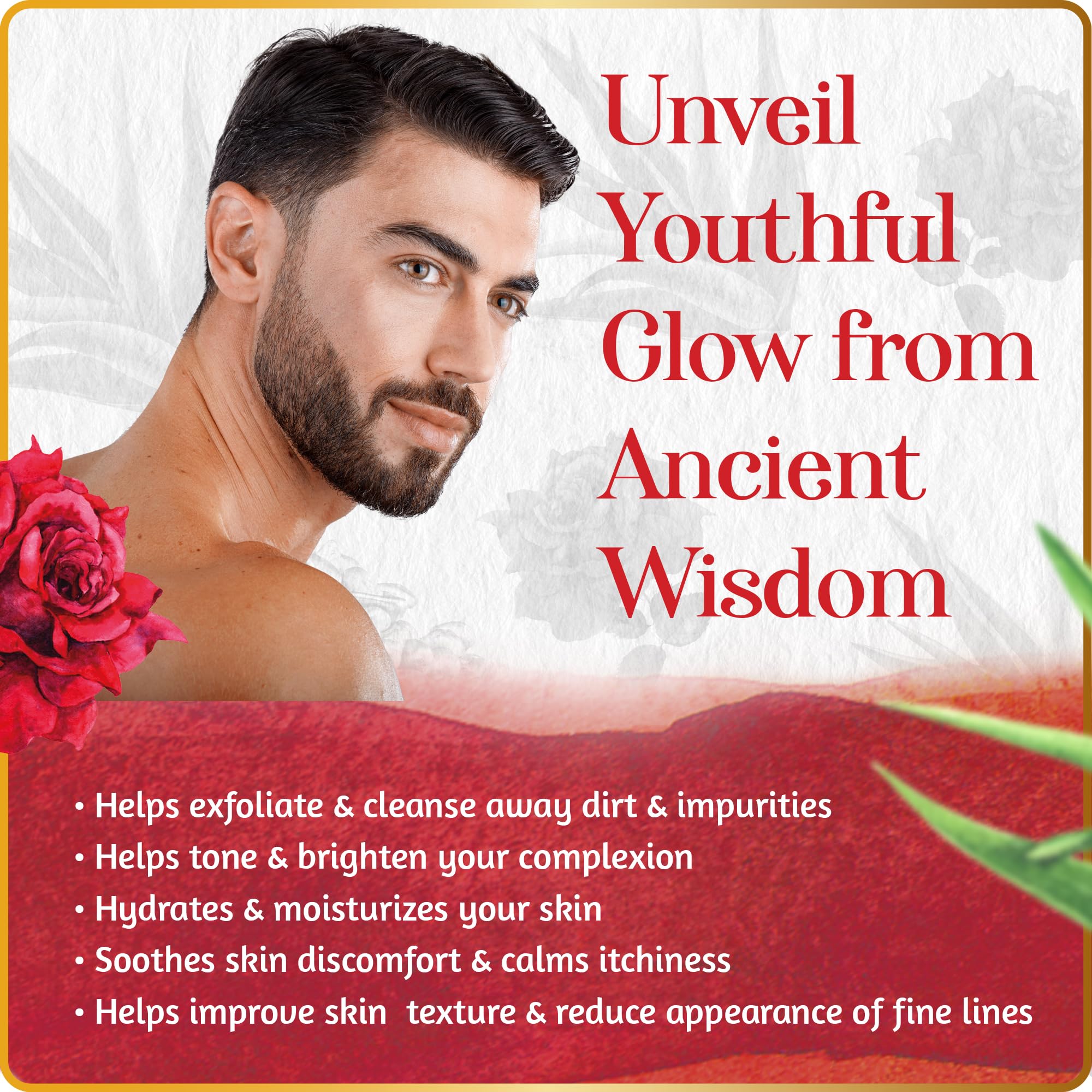 BENEFIT: This face wash pack contains rosewater which gently cleanses and tones minimizes fine lines hydrates and improves the skin texture
