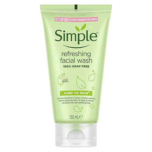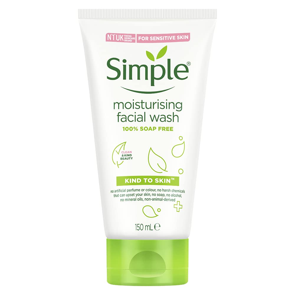 Simple Kind To Skin Moisturising Facial Wash Facewash No Soap No Added Perfume No Harsh Chemicals No Artificial Color No Alcohol And No Parabens 150 mlHave dry acne prone sensitive skin? Simple Moisturising Facial Wash is just facewash for your dry skin. This mild face wash thoroughly cleanses your skin removing oil dirt and other impurities without leaving it to feel dry or dehydrated. Ideal for everyday use as part of your skincare routine. Gentle and moisturising like a cleanser milk our moisturising face wash gives the perfect hydration required. This perfect moisture-balancing cleanser carefully blended with our purest possible ingredients and multi-vitamins our facial wash is enriched with pro-vitamin B5 Vitamin E and Bisabolol leaving your face feeling clean and refreshed. It's a foam based formulation known to be the best facewash for sensitive skin. Our Moisturising Facial Wash like all Simple products contains no colour or dye no soap and no artificial perfume. We're dermatologically tested and approved and ophthalmologically tested. Specially designed for sensitive skin users we're tested and approved hypoallergenic and non-comedogenic. At Simple we're all about Clean Beauty with 100% efficacy! And it's really SIMPLE â no skin irritants only skin loving ingredients as we know what we leave out of our products is just as important as what we put in! In fact we only include ingredients that downright love your skin and respect its natural balance and build it further. Because all skin can be sensitive at times; pollution stress irritants changing weather lack of sleep and city living there's a million reasons why your skin can feel a little sensitive and need the extra care and kindness. And we believe Clean Beauty is Simple even for sensitive skin!Simple Kind To Skin Refreshing Facial Wash 150 ml Mild Face Wash with No Harsh Chemicals Soap Free Paraben Free Gentle Cleanser for Sensitive SkinHave oily acne prone sensitive skin? Simple Refreshing Facial Wash is just facewash for your oily skin. This mild facewash thoroughly washes away make-up dirt and other impurities leaving your skin feeling clean fresh and revived. This is the best facewash for oily skin as it's known to remove that extra oil but not dry out your skin. In fact it boosts hydration levels and cleanses gently. Made with skin-loving ingredients it contains Triple Purified Water and vitamins to help replenish and nourish your skin without irritation. Its gentle soap-free formula will make sure you don't dry out your skin. It's a gel formulation known to be the best facewash for sensitive skin. Our Refreshing Facial Wash like all Simple products contains no colour or dye no soap and no artificial perfume. We're dermatologically tested and approved and ophthalmologically tested. Specially designed for sensitive skin users we're tested and approved hypoallergenic and non-comedogenic. At Simple we're all about Clean Beauty with 100% efficacy! And it's really SIMPLE â no skin irritants only skin loving ingredients as we know what we leave out of our products is just as important as what we put in! In fact we only include ingredients that downright love your skin and respect its natural balance and build it further. Because all skin can be sensitive at times; pollution stress irritants changing weather lack of sleep and city living there's a million reasons why your skin can feel a little sensitive and need the extra care and kindness. And we believe Clean Beauty is Simple even for sensitive skin! Aqua Cocamidopropyl Betaine Propylene glycol Hydroxypropyl methyl cellulose Panthenol Tocopheryl Acetate Pantolactone Sodium hydroxide Disodium EDTA Sodium Hydroxymethylglycinate Ingredients correct at time of publishing. Always check product packaging.