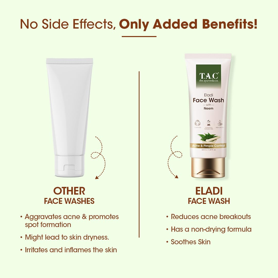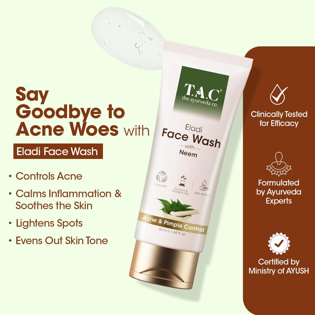 TAC - The Ayurveda Co. Eladi & Neem Face Wash For Clear & Acne Free Skin - Controls Oil Blemishes & Hydrates Skin - 50Ml