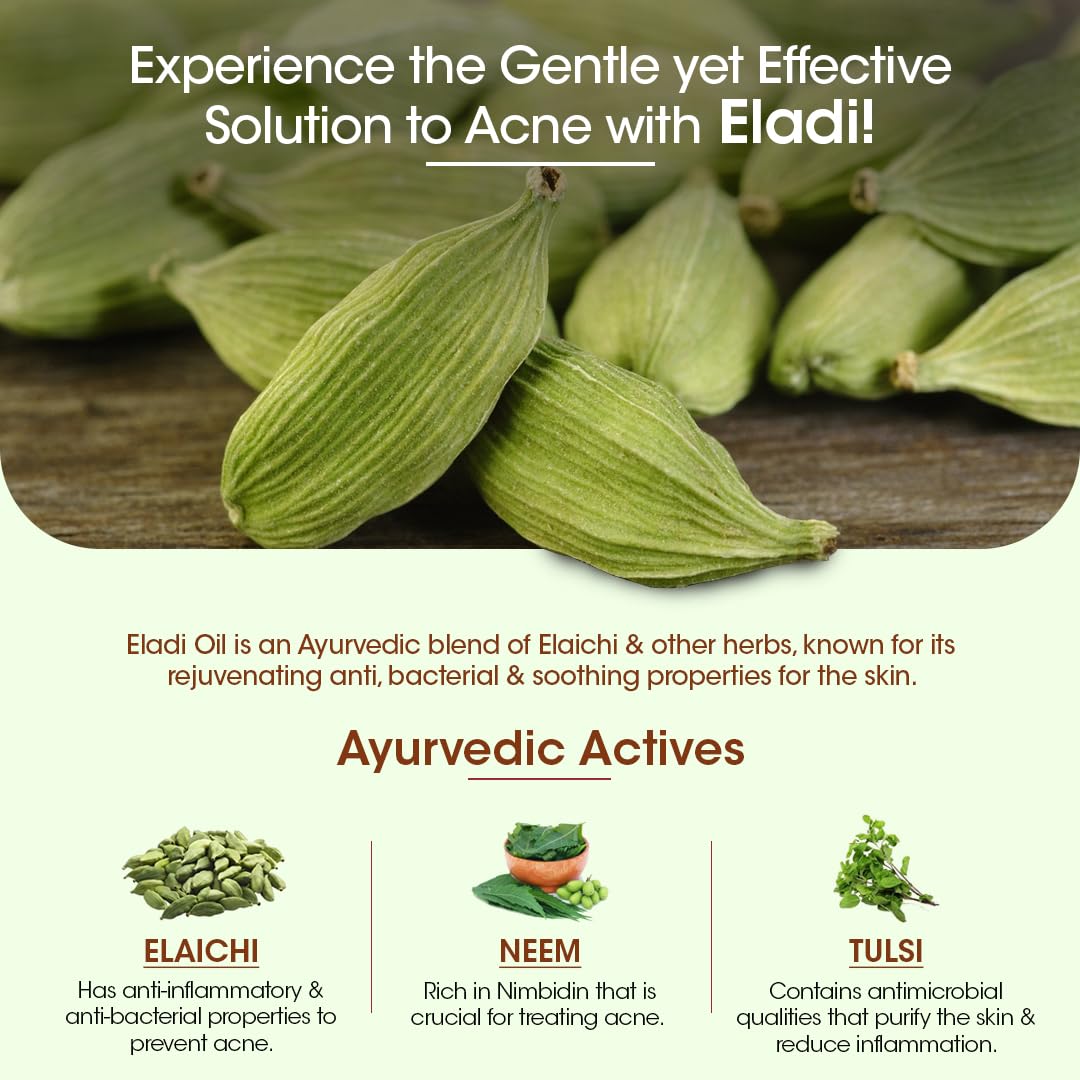 • Removes Acne & Impurities: Enriched with Eladi oil & Neem it effectively removes impurities excess oil and makeup without stripping the skin.