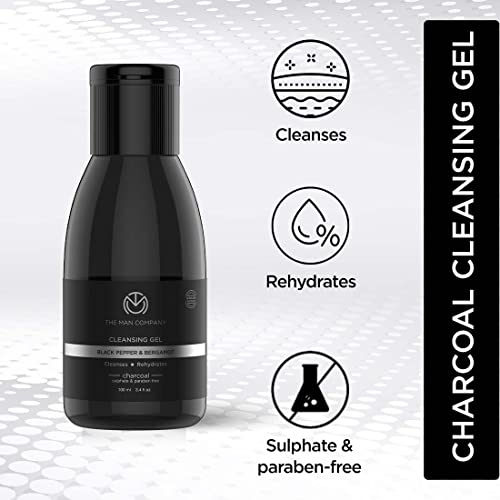 The Man Company Activated Charcoal Tan Removal Cleansing Gel for Oil Control & Glowing Skin | Black Pepper & Bergamot | 100ml