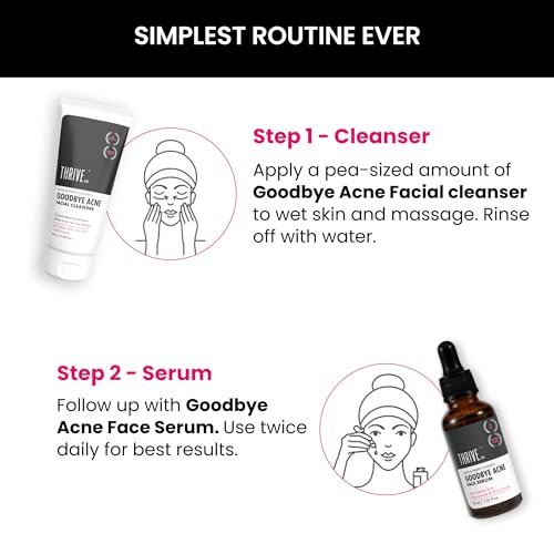 15-MIN FASTEST ACNE CONTROL: ThriveCo Goodbye Acne Kit (Face Wash + Serum) is the fastest solution for relief from Acne. In just 15 minutes it reduces acne-causing bacteria by 27% and improves skin hydration by 98%. Best for tackling post-acne spots acne