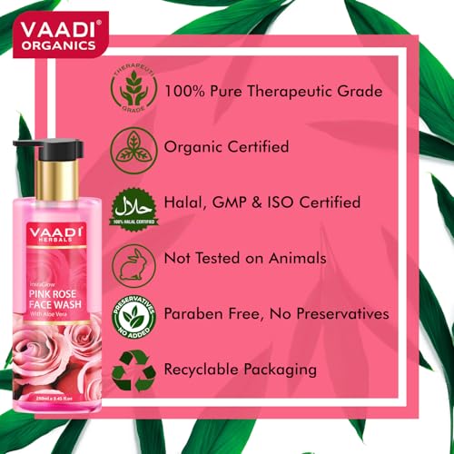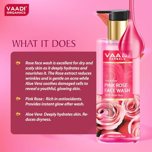 Vaadi Herbals Pvt Ltd Insta Glow Pink Rose Face Wash With Aloe Vera Extract, 250 Ml (Pack Of 2)