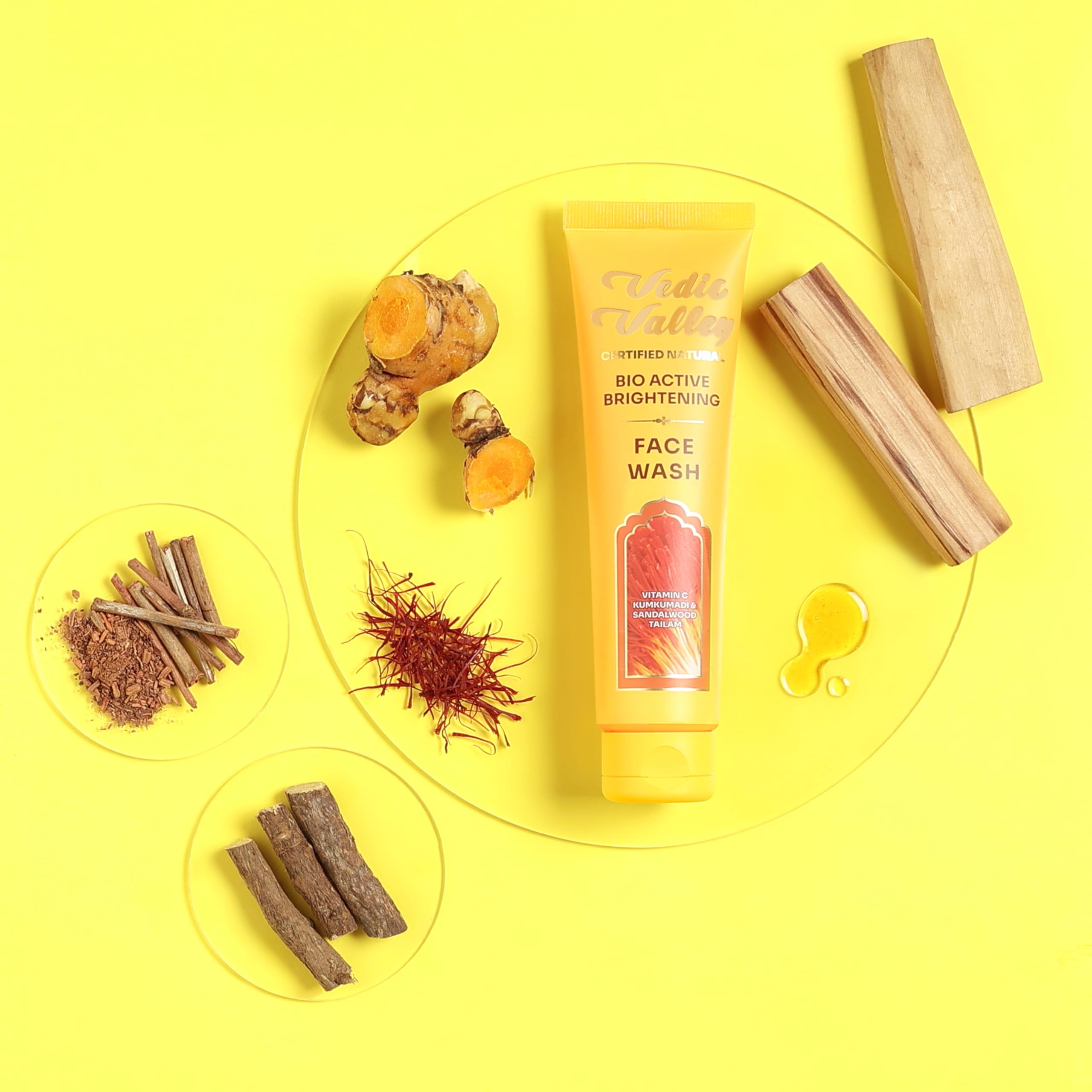 Vedic Valley Face Wash Bio Brightening - With Kumkumadi Oil & Yogurt Protein - Battles ageing and wrinkles 100 g