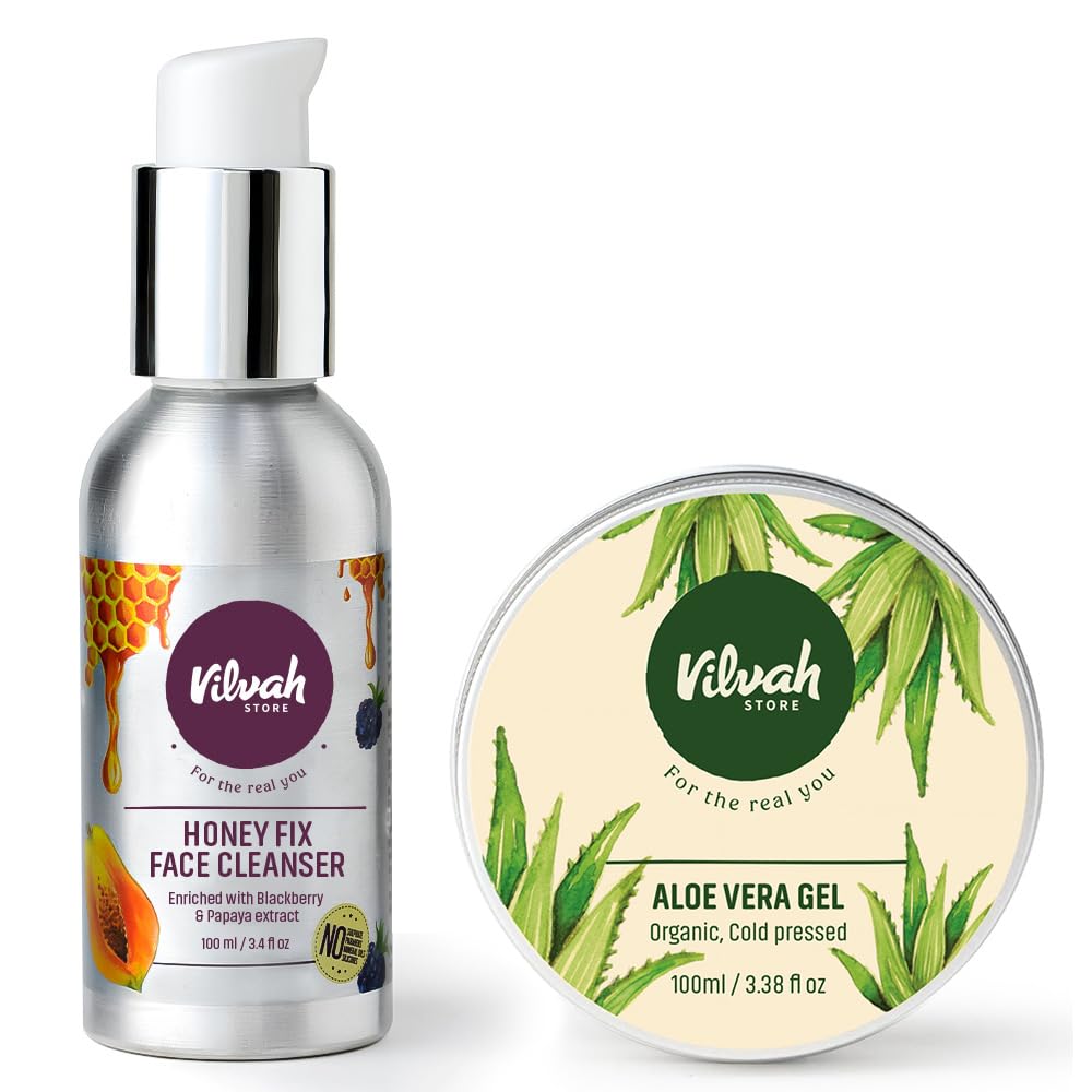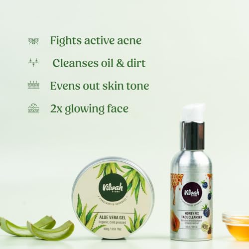 Ultimate Combo for Oily Acne Prone Skin. Honey Fix face cleanser and Aloe Vera Gel are must-haves if you are prone to breakouts often. Sebum regulator in the face cleaner and the calming effect of Aloe vera gel treat your Acne effectively. Raw forest Honey being the star ingredient is rich in antiand possesses properties. It is great for anti-acne s and prevention.Cleanse your face with the Honeyfix face cleanser and apply the aloe vera gel. The multi-functionality aloe vera can be used as a face Fancy Covermoisturizer hair pack styling gel and leave-in conditioner. It can be used as an everyday moisturizer soon after a shower or during the nighttime.What's inside the combo : Honeyfix Face cleanser 100ml and Aloe vera Gel 100gm.