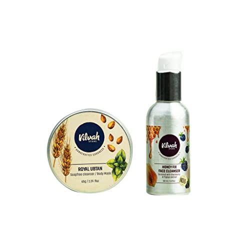 Ultimate Combo for the Tanned Skin. Honeyfix face cleanser and Royal Ubtan are must-haves if you are some who gets exposed to sun.What's inside the combo: 100ml Honeyfix Face cleanser and 65g Royal UbtanBenefits:With an exotic combination of sundried luxurious ingredients Our Royal Ubtan not only acts as a -free cleanser but exfoliates the skin which stimulates the underlying tissues and removes the tan effectively. It serves the multi-purpose role of cleanser scrub faceFancy Coverand body Fancy Coverall at the same time Raw forest Honey and Papaya extract along with the witch hazel and aloevera water in our Honeyfix face cleanser is rich in anti-and possess properties. This acts as a natural humectant and keeps the skin well moisturized and promotes a natural glow.Usage: Cleanse your face with the Honeyfix face cleanser and apply the aloe vera gel. The multi-functionality aloe vera can be used as a face Fancy Covermoisturizer hair pack styling gel and leave-in conditioner. It can be used as an everyday moisturizer soon after a shower or during the nighttime.