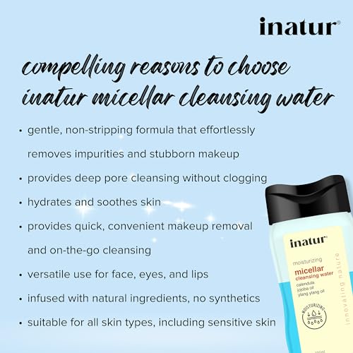 DEEP CLEANSING: Inatur Micellar Cleansing Water goes beyond surface-level cleaning. It penetrates deep into your pores to dissolve impurities makeup and excess oil leaving your skin truly clean.