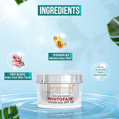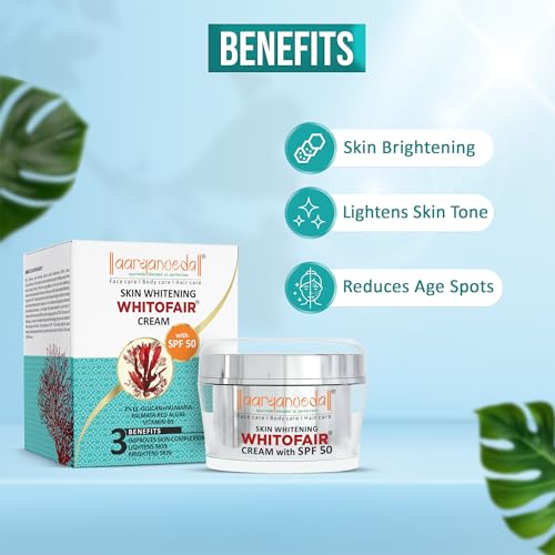 Aryanveda Skin Whitening Whitofair Cream Spf 50 Face Cream For Skin Brightening & Moisturisation With 2% α- Glucan & Vitamin B3 Lightweight - 50g
