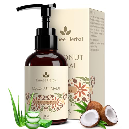 Avimee Herbal Coconut Malai is a natural face cream packed with coconut water and aloe vera. It hydrates and soothes dry skin leaving it feeling soft and refreshed. This gentle formula is perfect for all skin types.