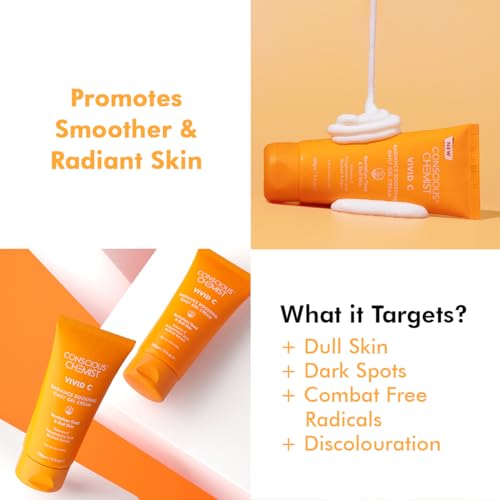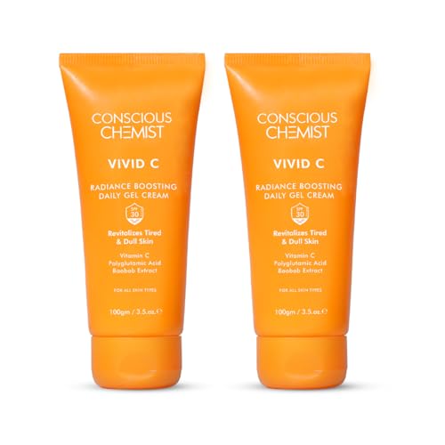 HomeHealth & PersonalSkin CareFace CareMoisturiser & CreamConscious Chemist® Vitamin C Cream with SPF30 PA+++ | 100g | Vitamin C Moisturizer, Face Cream for Men & Women, Daily Gel with Polyglutamic Acid for Bright Skin, All Skin Types - Vivid C (Pack of 2)