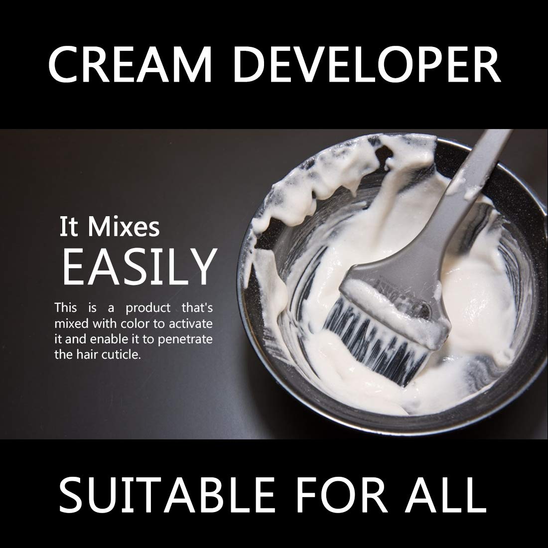 Lilium Cream Developer is a product that's mixed with color to activate it and enable it to penetrate the hair cuticle. It contains hydrogen peroxide and it either lifts or deposits the color.