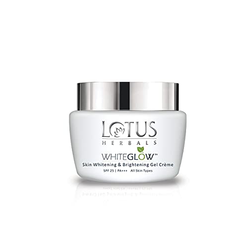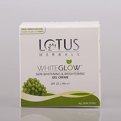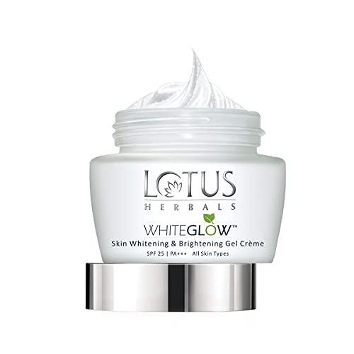 The Lotus Herbals Whiteglow Skin Whitening and Brightening Gel Cream SPF-25 (60 g) is an apt product to help you fight the stern rays of the sun and remain tan-free for a long period of time thanks to its SPF 25 PA+++ formulation. It has a one of its kind base that has the amazing combination of a gel and a cream. This unique base facilitates fast absorption leaving you with youthful looking supple skin that radiates brightness. The mulberry saxifrage and grape extracts helps make the skin brighter override the harmful effects of skin darkening and lend a beautiful texture to the skin surface post application. Its milk enzymes act as natural fairness agents and lightens the skin tone with a visible difference. You can now effectively tackle the harmful effects of both UVA and UVB on applying this cream.The cream is made from multiple fruit extracts that act as quality elements for the smoother brighter and well-protected skin.Its SPF 25 can help you get ideal skin protection while in direct sunlight.It is gel based cream â a unique formulation to help quick absorption and oil free look.The fairness agents provide a brighter complexion while keeping you protected against the harsh effects of sunlightIt rejuvenates the skin from within and provides extra glow. This makes the skin look fresher and lighter than before.It protects the skin from UVA and UVB rays and thus effectively prevent skin darkening. How does it fit in my day? Step 1: Take a coin-sized amount of "WhiteGlow Facial Foam" on your finger tips. Gently cleanse your face and neck using circular motions for few minutes. Wash it off with cool water. Step 2: Take 2-3 drops of Serum on your fingre. Gently rub in the serum in circular motion Step 3: Apply a generous amount of "WhiteGlow Gel Creme" during day and "WhiteGlow Night Creme" at night. Use your fingers to gently rub the creme into the skin. Start with circular motions on your cheeks and later apply on your neck area forehead and T-zone.