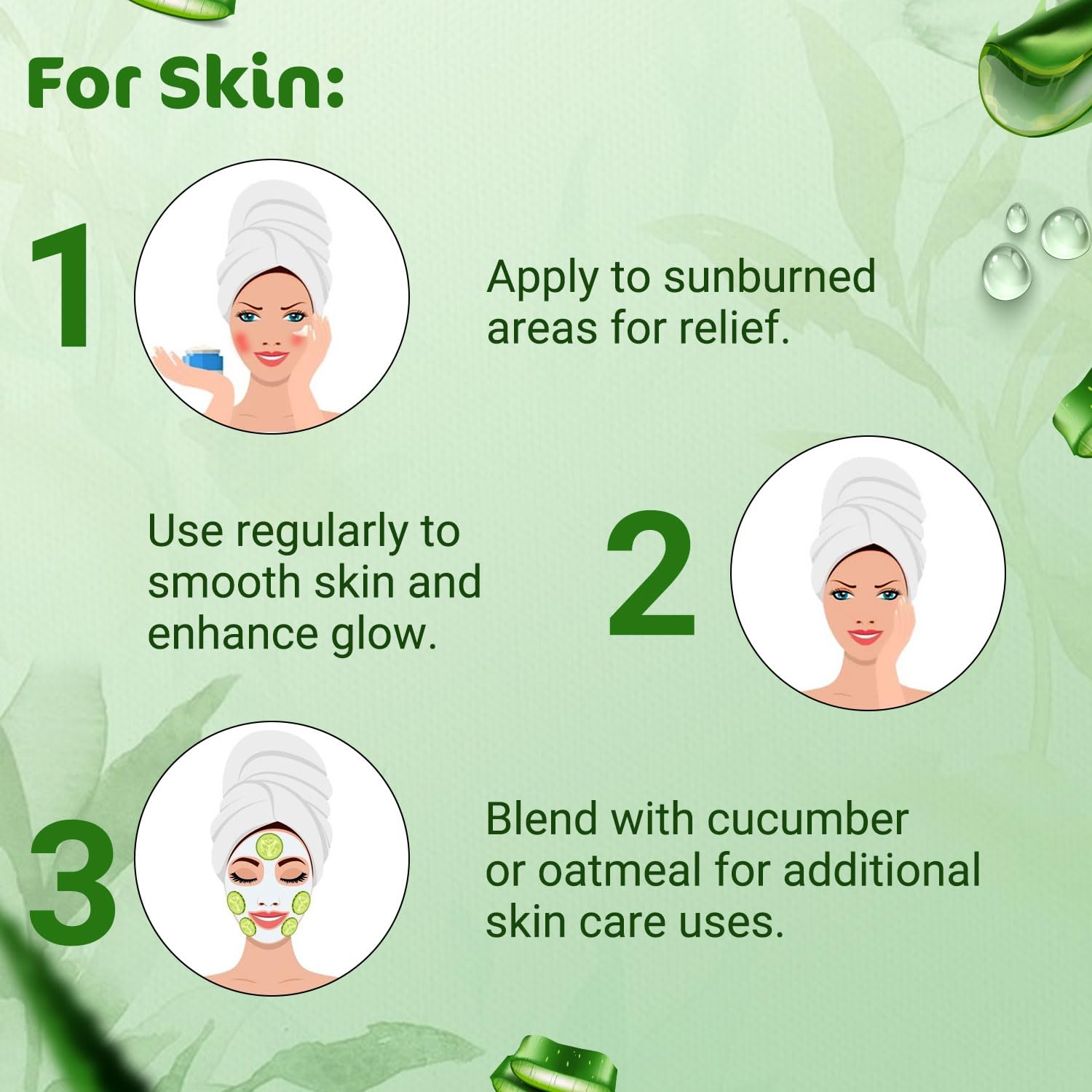 • Organic Netra Aloe Vera Gel is perfect for Hair. If Aloe Vera gel is applied on the scalp it s the itchy and flaky scalp by hydrating it. Organic Netra Aloe vera gel can be used as a conditioner as well for dry and fragile hair. Dull hair o becomes Shiny