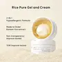 Rice Pure Gel And Cream is 2 in 1: soothing gel and nourishing cream. The gel has a lightformula that instantly calms down the skin irritated by sun exposure while the cream is the best option for those who need extra moisturizing and nutrition care.Ingredients:-Water oryza sativa (rice) extract glycerin caprylic/capric triglyceride hydrogenated polydecene niacinamide phenyl trimethicone betaine 12-hexanediol polyglyceryl-3 methyldistearate laminaria japonica extract eclipta prostrata leaf extract centella asiatica extract ficus carica (fig) fruit extract acmella oleracea extract phellodendron amurense bark extract melia azadirachta flower extract melia azadirachta leaf extract curcuma longa (turmeric) root extract ocimum sanctum leaf extract theobroma cacao (cocoa) seed extract corallina officinalis extract camellia sinensis leaf extract vigna radiata seed extract leucojum aestivum bulb extract diospyros kaki leaf extract macadamia integrifolia seed oil hydrogenated lecithin sodium hyaluronate cyclohexasiloxane cetyl alcohol ammonium acryloyldimethyltaurate/vp copolymer methylpropanediol glyceryl polymethacrylate glyceryl stearate behenyl alcohol trehalose pentaerythrityl distearate polyglyceryl-10 laurate octyldodeceth-16 sodium stearoyl glutamate acrylates/c10-30 alkyl acrylate crosspolymer glyceryl caprylate fructooligosaccharides disodium edta cellulose gum beta-glucan butylene glycol hydrolyzed hyaluronic acid dextrin ceramide np pentylene glycol ethylhexylglycerin hydroxyacetophenone.How To Use:- Scoop a quarter-sized amount from the jar with spatula and gently apply all over your face. For Moisturizing morning skincare routine or to calm down irritated skin apply in ratio Gel : Cream = 2 : 1 For Nourishing night skincare routine or for extra moisturising care apply in ratio Gel : Cream = 1 : 2.
