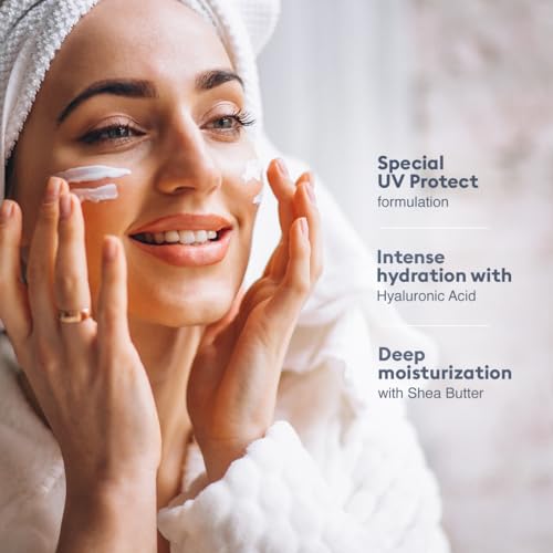• Formulated to enhance glow and protect the skin from UV damage this UV Protect Nourishing Face Cream helps hydrate and moisturize the skin and prevent sun damage that can lead to sun spots age spots and patchy skin.