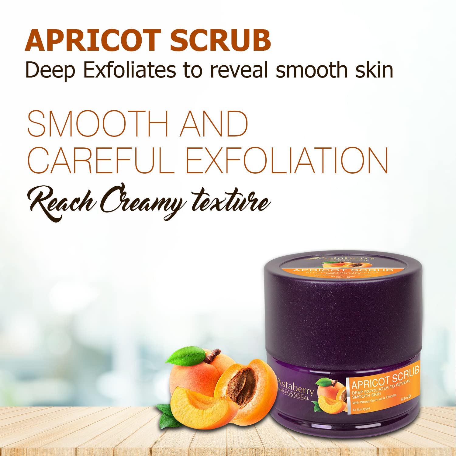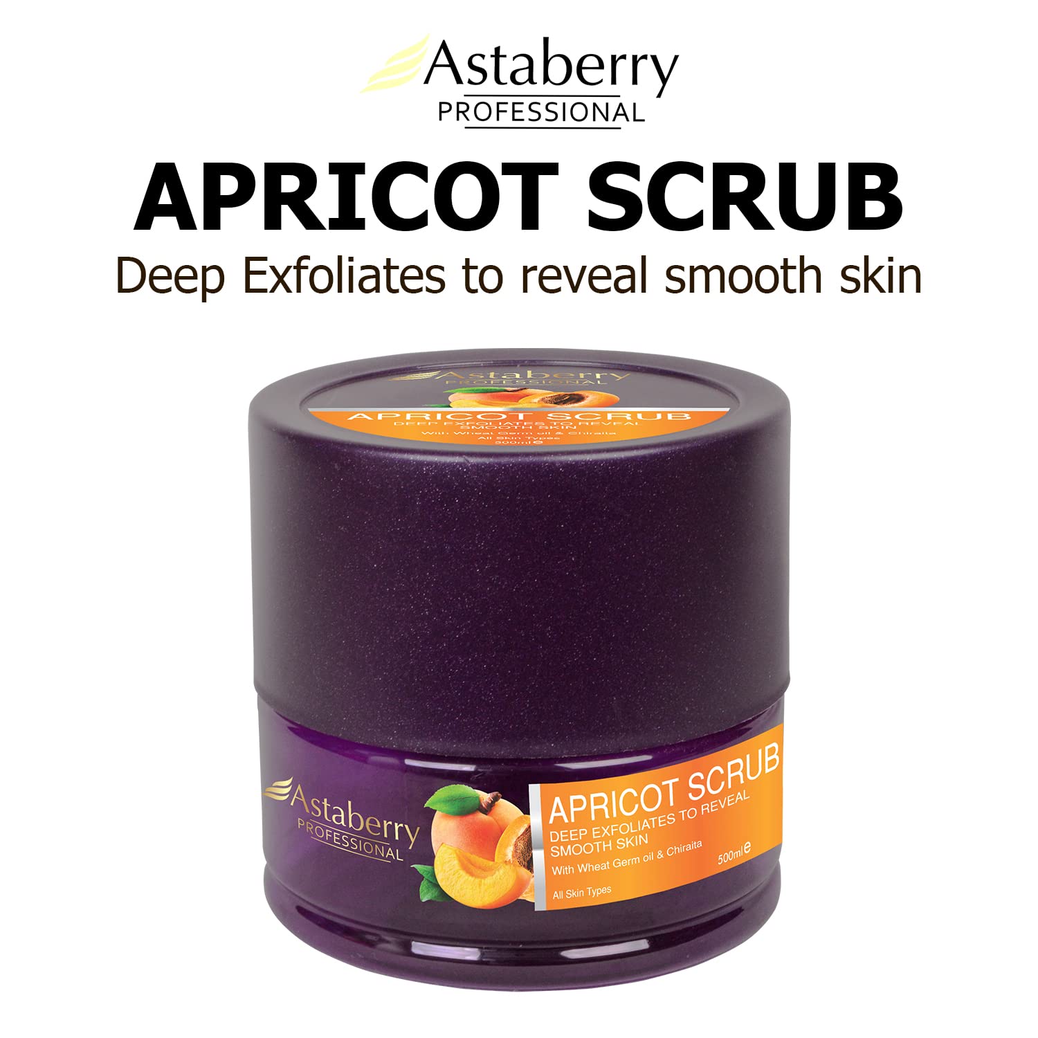 ASTABERRY Professional Apricot Scrub For Deep Exfoliates 500ml - Goodness of Wheat Germ & Chiraita | Removes dead epithelial cells | Blackhead removal | Smooth skin & Skin renewal