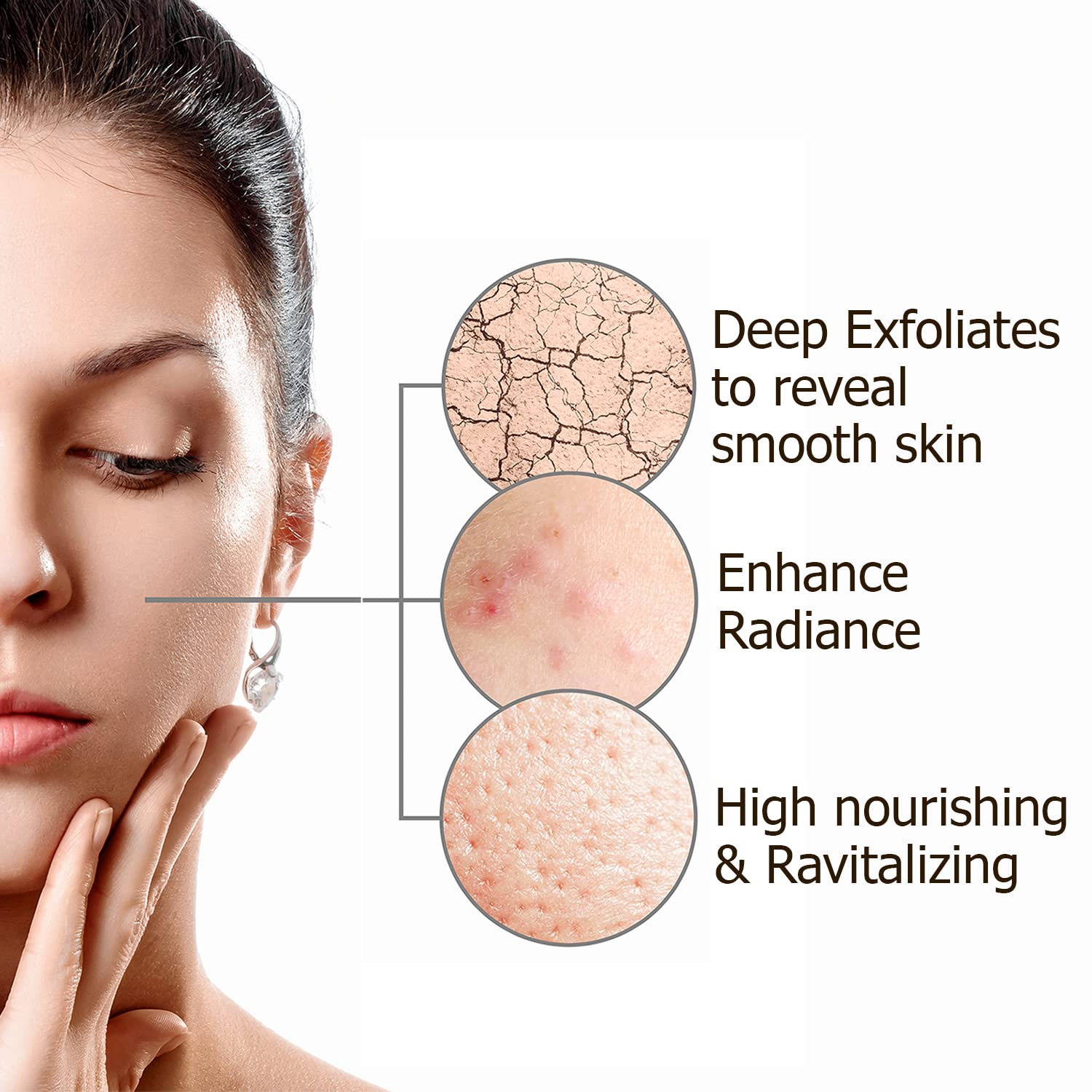 Benefits : Deep clean Removed dead cells Smoothens skin