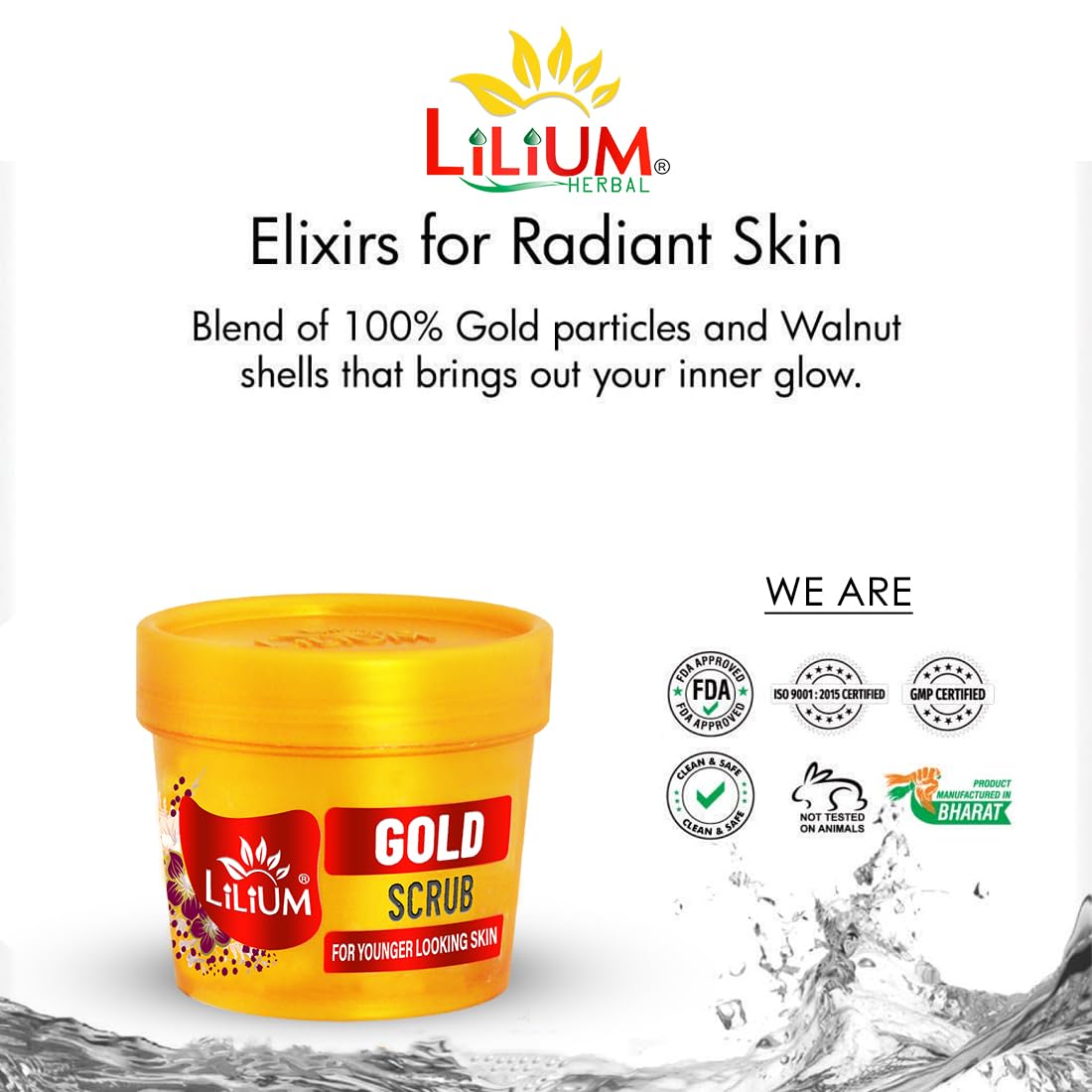 Lilium Gold Scrub 100g For Younger Looking Skin Ultra Glow Feel Fresh & Smoothness No Harmful Chemical & Paraben Free